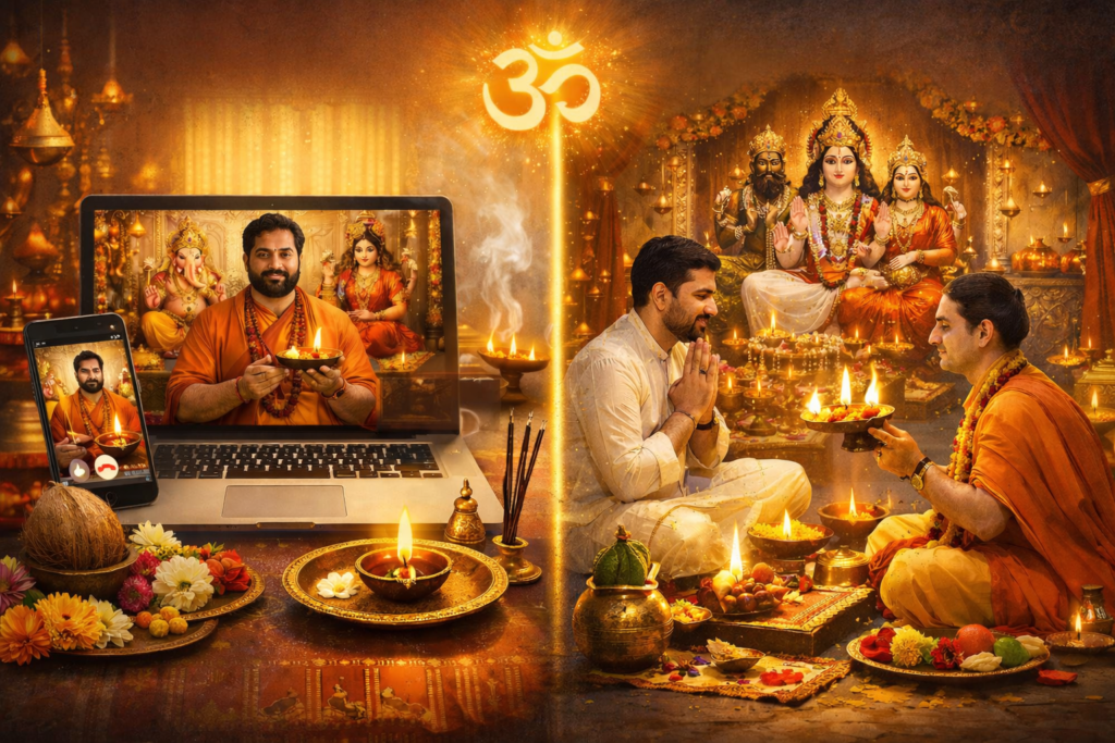 इस वेबसाइट के माध्यम से हम ऑनलाइन पूजा की सुविधा प्रदान करते हैं, जहाँ पंडित जी विधिवत मंत्रोच्चारण के साथ पूजा संपन्न करते हैं।